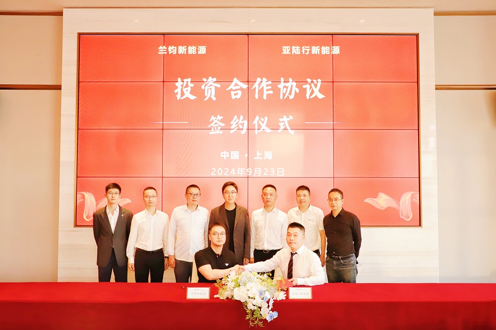 9月23日下午,兰钧新能源科技有限公司与深圳亚陆行新能源材料有限公司在PA旗舰厅实业总部大楼举行投资合作协议签约仪式。永青科技集团战略协同部副总经理张奕炜与亚陆行新能源副总经理陈德票代表双方签署合作协议,永青科技集团副总裁、兰钧新能源董事长冯挺,亚陆行新能源董事长陈德文等相关领导出席见证本次签约仪式。