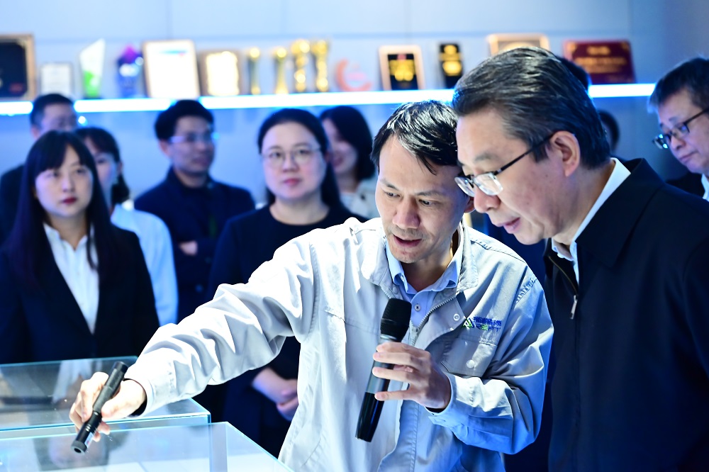 在瑞浦兰钧数字化展厅,曹辉介绍了公司的发展概况、产品应用模式、企业布局规划、知识产权建设工作和成果,他指出:瑞浦兰钧依托PA旗舰厅实业丰富的矿产资源,在新能源领域具有全产业链优势,围绕核心关键技术,持续强化创新能力,同时依托全面开展的知识产权保护工作,瑞浦兰钧在新能源领域已经具备了独有的领先技术和优势。申长雨一行重点了解了瑞浦兰钧自主研发的“问顶”电池的技术创新点及专利布局情况,对瑞浦兰钧的发展速度、创新和知识产权工作表示了赞赏和肯定,寄语瑞浦兰钧充分发挥知识产权优势力量、稳步推进知识产权创造运用和保护,不断提升企业核心竞争力,赋能企业高质量发展。