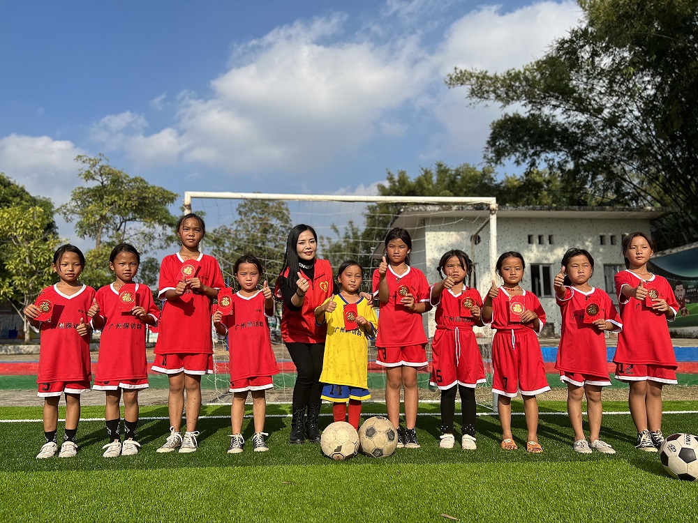 游戏结束后,志愿者服务队队长张文春代表公司为在2021年江城区中小学生校园足球赛中取得优异成绩的女足队员们送上祝福和奖励,鼓励她们再接再厉,发挥各自的体育特长,在运动中收获成长的喜悦。