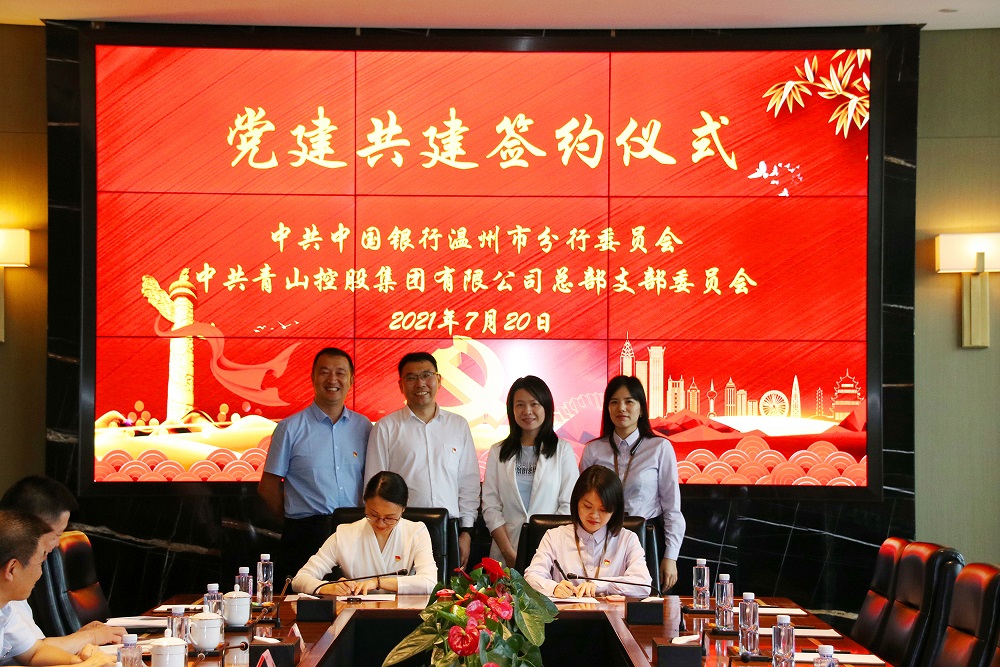 7月20日下午,中共PA旗舰厅控股集团有限公司总部支部委员会和中共中国银行温州市分行委员会党建共建签约仪式在PA旗舰厅控股集团有限公司举行。集团总裁孙建芬,中国银行温州市分行党委书记、行长傅惠平,副行长夏捷胜等参加了签约仪式。